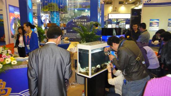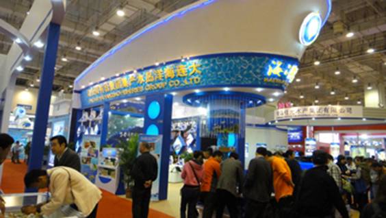中国国际渔业博览会是与欧洲布鲁塞尔渔业展览和美国波士顿渔业展览齐名的世界三大渔业展览之一。2011年11月1日-3日在山东青岛召开,海洋岛水产集团作为参展商由集团总裁带队参展。公司展出了活品、海参产品、冻品以及休闲食品四大系列产品,其中与合作企业共同展出的稀缺海参品种——白玉参收到参展者的高度关注,咨询、拍照人员络绎不绝,成为本次展会的最大亮点。同时因为独特的区位、资源、环境优势以及以独具特色的竹制包装为亮点的海参产品吸引众多目光,公司提出“世界海参哪里好、中国大连海洋岛”的宣传理念,全面诠释的海洋岛海参的惟一性,受到专业采购商的高度认可。