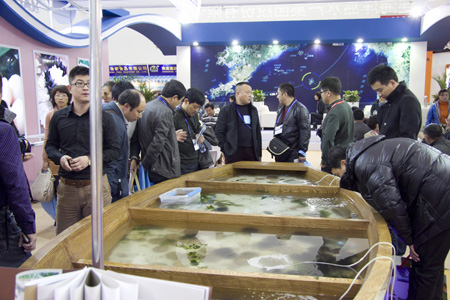 2012年11月6-8日,第十七届中国国际渔业博览会在大连世博广场隆重举行,海洋岛水产集团作为国内农业产业化龙头企业受邀参展。渔博会作为世界三大渔业博览会之一,吸引众多专业人士、国内外渔业企业的参与。 本届渔博会,海洋岛水产集团参展32个标准展位,展示面积288平方米。设置活品展示区、冻品展示区及海参产品展示区,全方位展示公司形象以及核心产品,吸引众多参展者的注意力,并洽谈多项合作项目,成为渔博会的亮点。