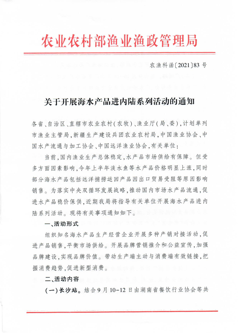 农业农村部渔业渔政管理局指导海水产品进内陆系列活动即将拉开帷幕